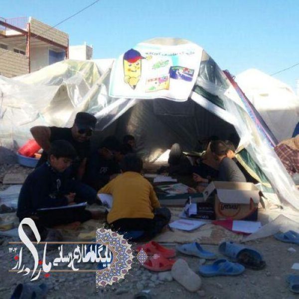 وی ادامه داد: این نقاشیها با رنگ اکرولیک کار شدهاند و ما در آن حال و هوای مردم، این آثار را در چادرها میکشیدیم. تلاش کردم علاقهمندان را جمع کردم که به ۴۰ نفر رسیدند و هر کس سبک خود را کار کرد که در کارها آبرنگ، رنگ روغن و مداد رنگ هم وجود دارد و البته نقاشیهایی هم توسط بچهها کشیده شد و من این نمایشگاه را بهخاطرآن ها برگزار کردم.